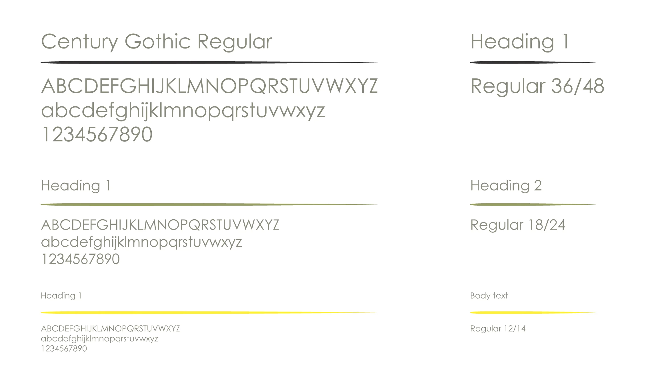 Similar to the flavor of the olive oil, the color palette balances earthy green tones with the brightness of white and a bite of golden yellow. Century Gothic's clean geometry lends to its modern vibe. I established a visual hierarchy by manipulating font size.